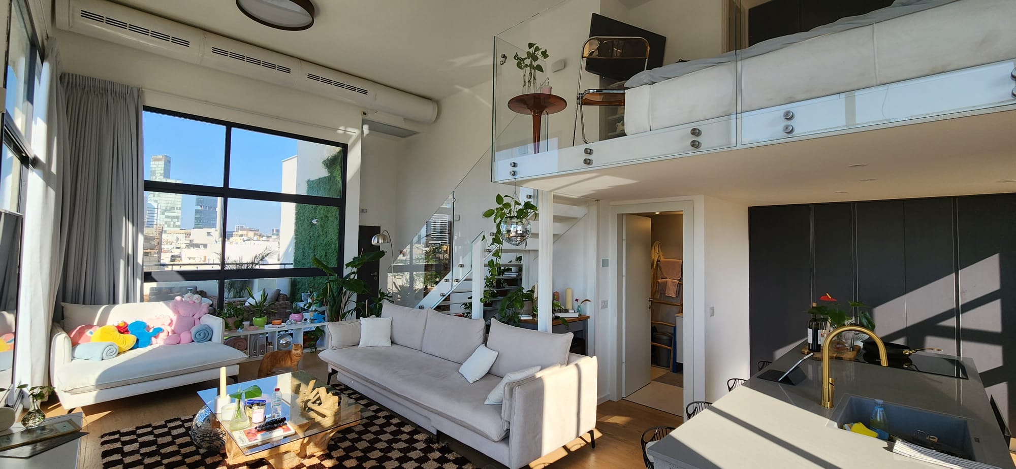 מחיר 5.950.000 מל בנחלת בנימין פינת פרנקל 100 מטר משוק לוינסקי, בבניין חדש מאוכלס, דירת פנטהאוס יחודית, במקור 3 חד' 60 מ"ר שהוסבה ללופט בסגנון ניו יורקי בחלל פתוח לחלוטין. תקרה בגובה כפול 5 מטר, קומת גלריה פתוחה 20 מ"ר שמשקיפה על כל החלל. שירותים כפולים. פנטהאוס משודרג ומעוצב, קירות מסך עצומים רצפה/תקרה עם תריסים חשמליים. 3 כיווני אוויר של נוף אורבני מרהיב. את הדירה מקיפה מרפסת 60 מ"ר וגם נוף ים. חניה ומחסן בטאבו.